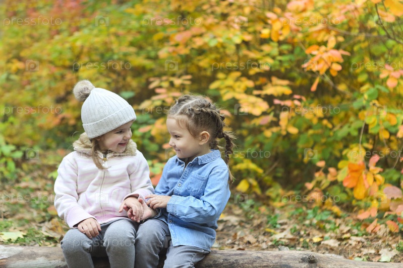 Милые маленькие девочки в осеннем парке