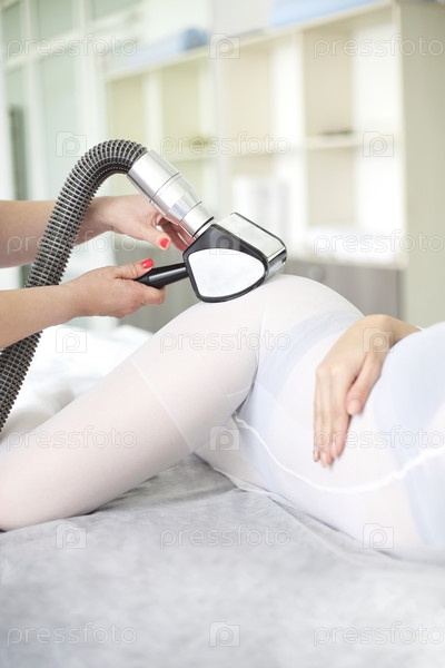 женщина делает липомассаж в салоне