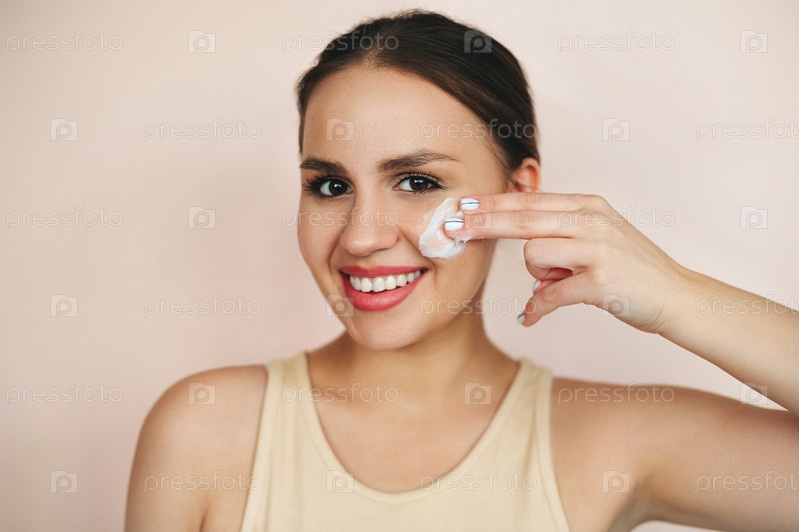 Молодая женщина размазывает крем по лицу