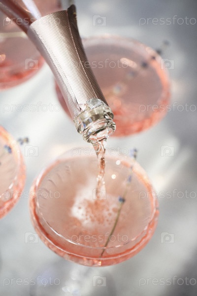 Бокалы с холодным розовым шампанским на столе