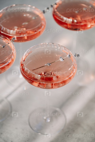 Бокалы с холодным розовым шампанским на столе