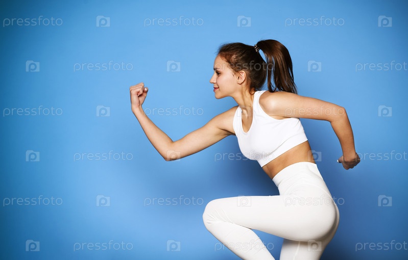 Бегущая спортсменка на синем фоне