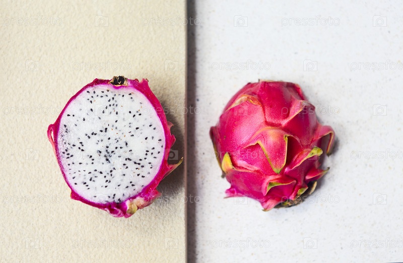 Нарезанный драконий фрукт на светлом фоне. Крупным планом