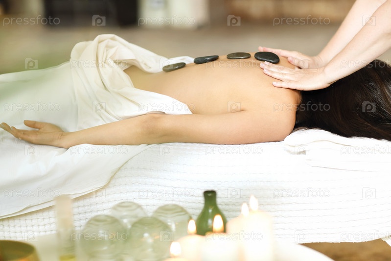 Терапевт массирует женщину камнями