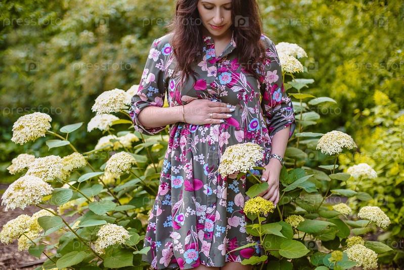 Красивая беременная женщина в саду
