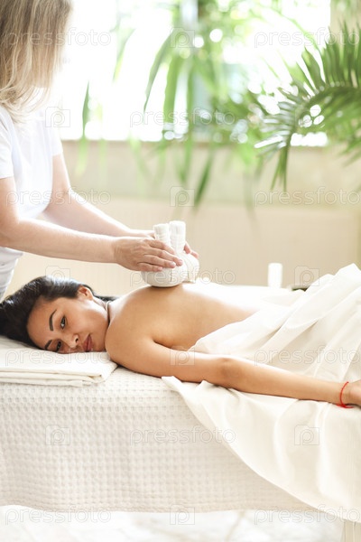 Массажистка делает процедуру на спине клиента