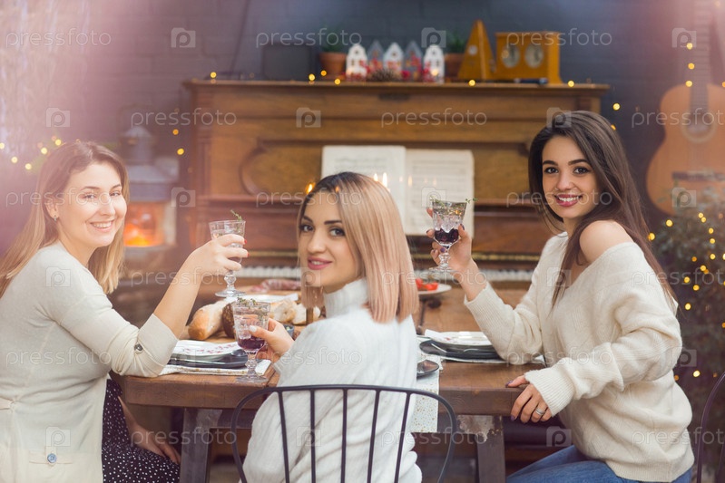 Красивые дамы празднуют Рождество вместе
