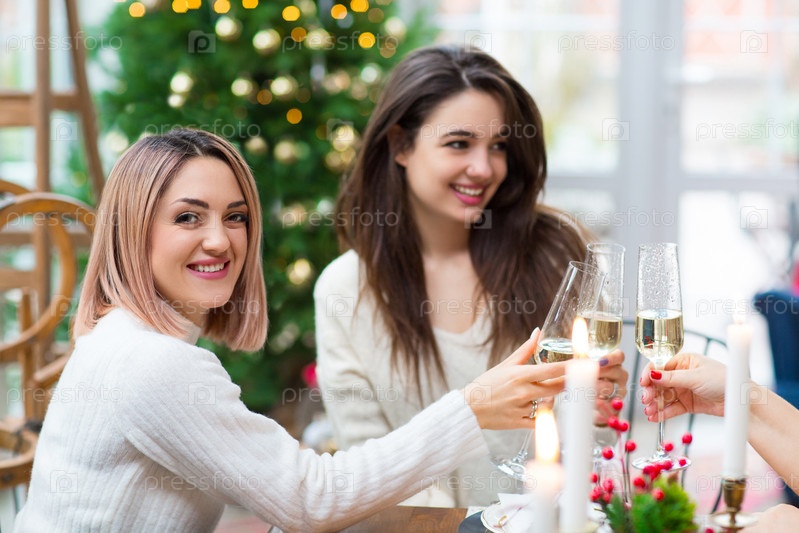 Красивые дамы празднуют Рождество вместе