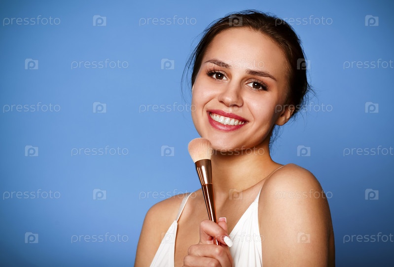 Портрет красивой женщины с пудровым лицом с кистью