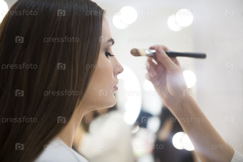 Профессиональный визажист делает макияж в салоне красоты