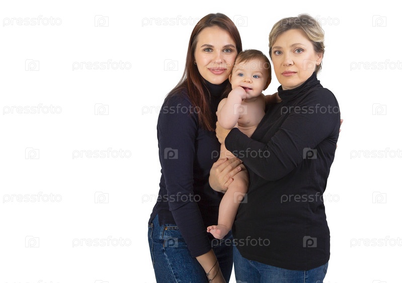 Бабушка, дочь и внучка на белом портрете