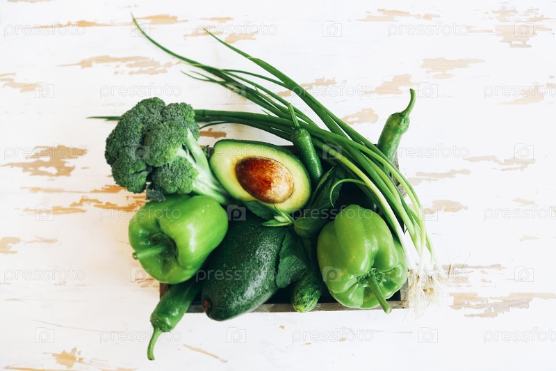Спелые зеленые овощи в коробке