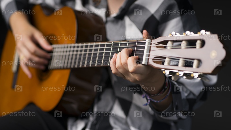 Девушка играет на гитаре. Изображение с выборочным фокусом