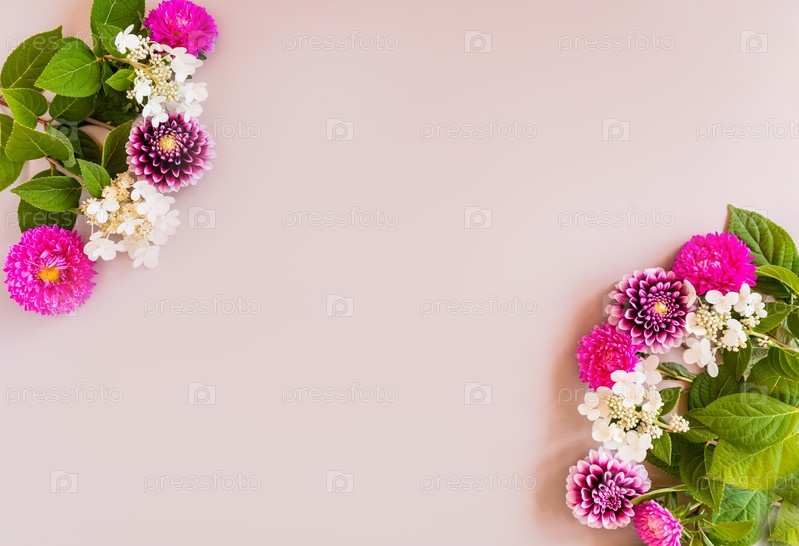 Красивые осенние цветы в композиции на бежевом фоне. вид сверху. букет. Рамка. копия пространства. открытка