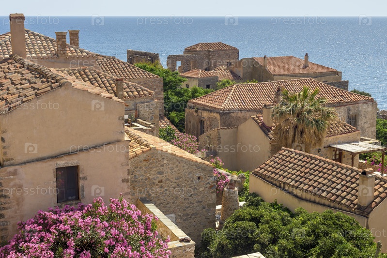 Вид на улицу укрепленного города Монемвасия (Лакония, Греция, Пелопоннес)