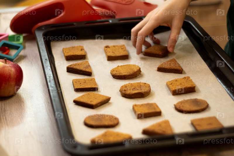 Печенье геометрической формы на бумаге для выпечки