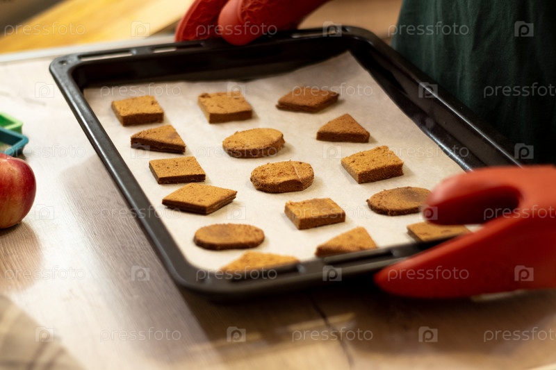 Печенье геометрической формы на бумаге для выпечки
