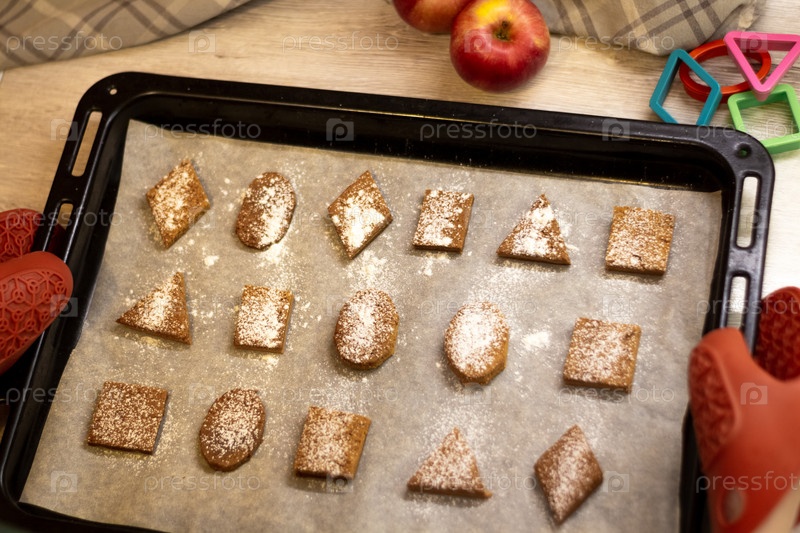 Печенье геометрической формы на бумаге для выпечки
