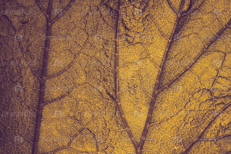 Осень. Пожелтевший осенний лист, простреленный, крупный план