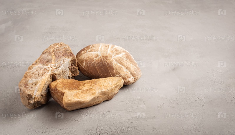Подиум из камней для демонстрации товара или товара. Серый бетонный фон. Копировать пространство