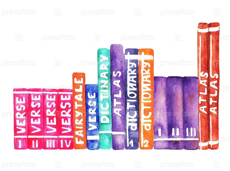 Набор стопки книг, акварель (3)