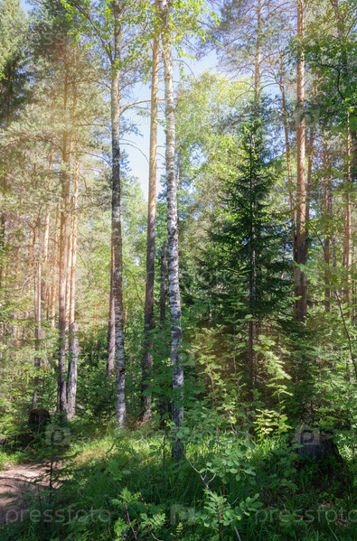 Деревья в лесу в солнечном свете