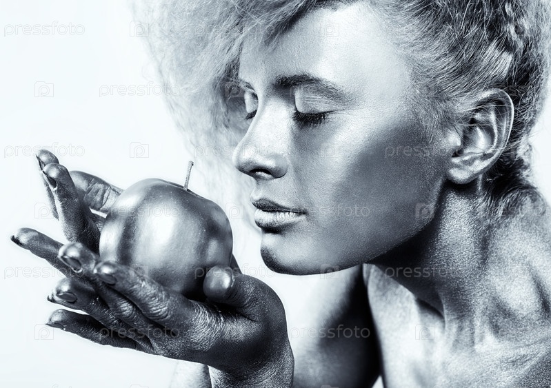 Серебряная девочка с яблоком