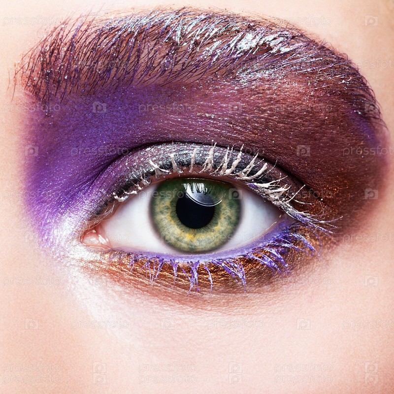 Женская зона вокруг глаз и брови с вечерним фиолетовым макияжем