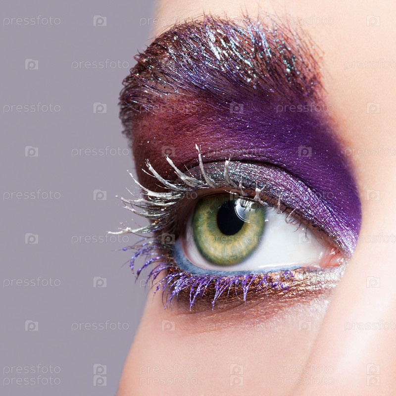 Женская зона вокруг глаз и брови с вечерним фиолетовым макияжем