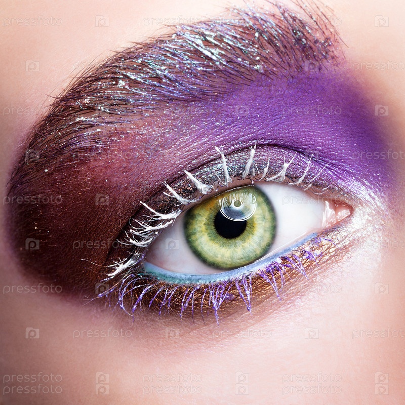 Женская зона вокруг глаз и брови с вечерним фиолетовым макияжем
