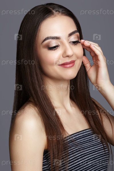 Портрет красивой большеглазой улыбающейся молодой женщины