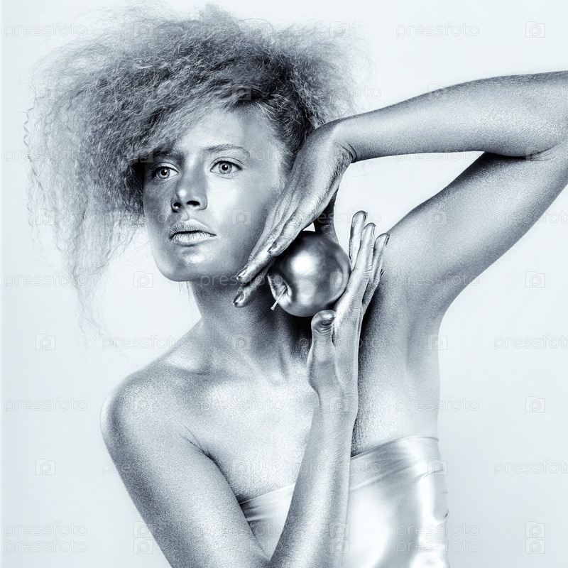 Серебряная девушка с яблоком