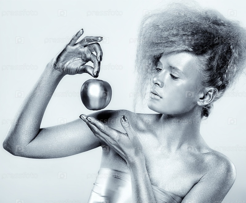 Серебряная девушка с яблоком