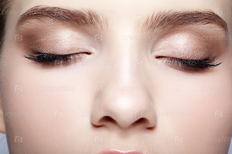 Женская зона вокруг глаз и брови с дневным макияжем