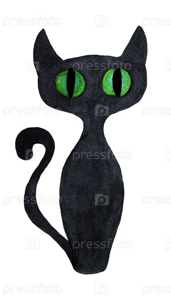 Черный кот. Хэллоуин. Акварель