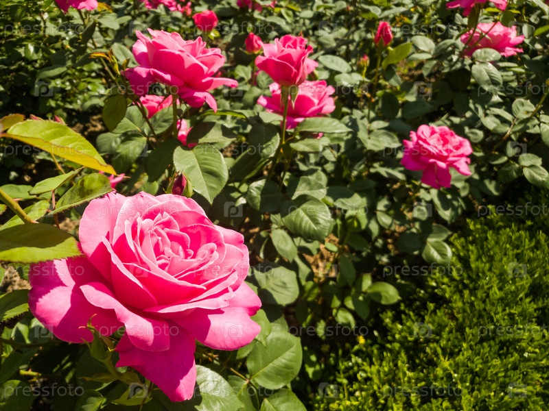 Красивые розовые розы летом в саду