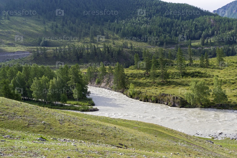 Вид на реку Чуя из поселка Чибит. Август. Горный Алтай