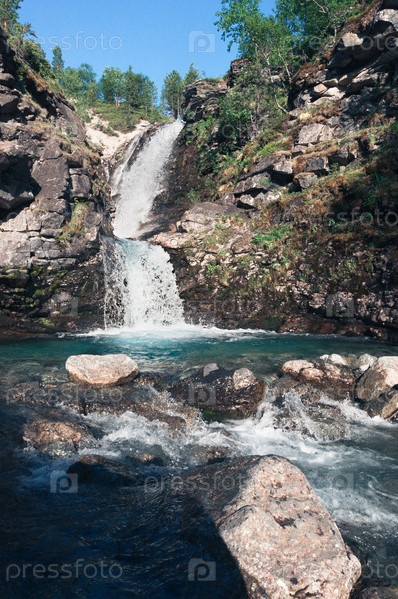 Водопад в лесу в Мурманской области