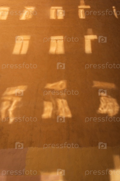 Тени на стене желтого дома во дворе Санкт-Петербурга