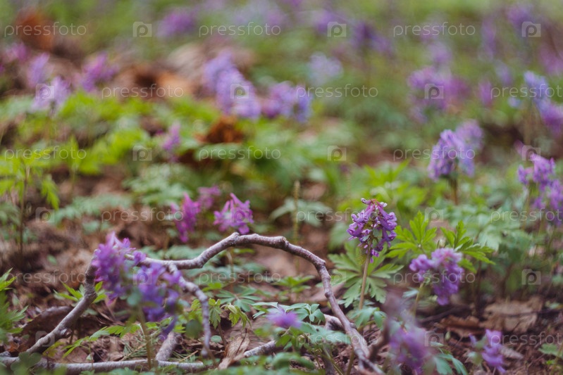 Фиолетовые цветы в лесу весной крупным планом