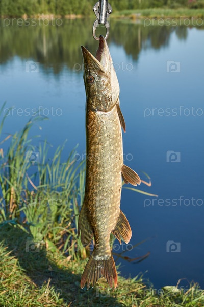 Щука. Рыбалка на озере. Отражение в воде. База отдыха. август 2021 г