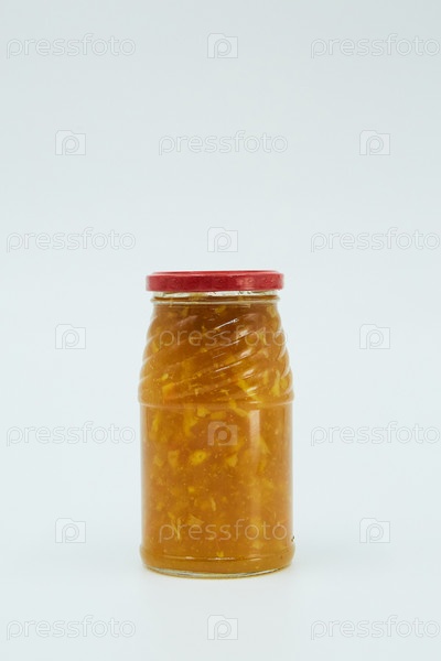 Консервированный соус или варенье из различных продуктов в стеклянной банке. Домашнее консервирование
