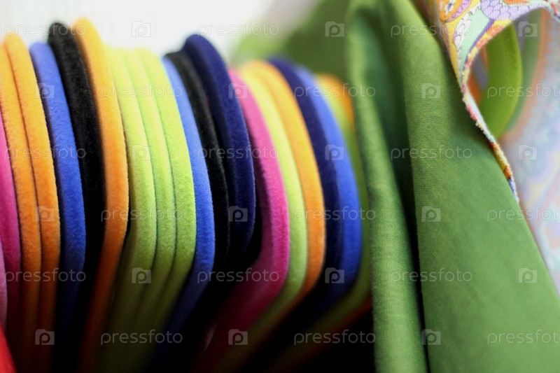 Яркие вешалки для одежды висят на кронштейне в творческой мастерской