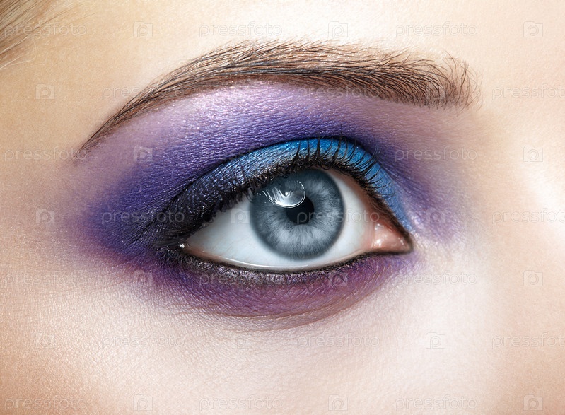 Женский глаз с синим и фиолетовым макияжем