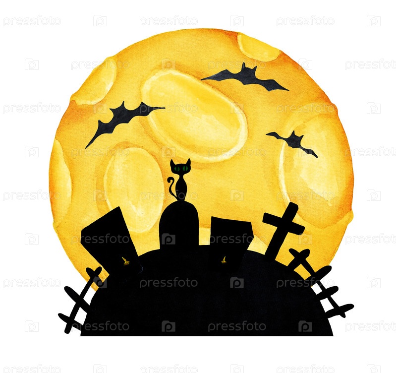 Хэллоуин. Кладбище. Акварель