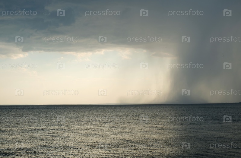 Гроза на горизонте в море. Водный пейзаж. Естественный фон