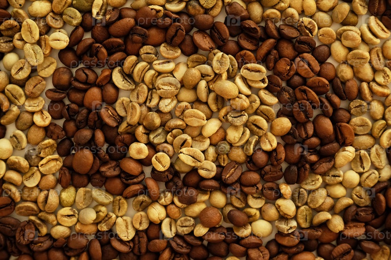 Текстура сырых зеленых и зажаренных в духовке кофейных зерен