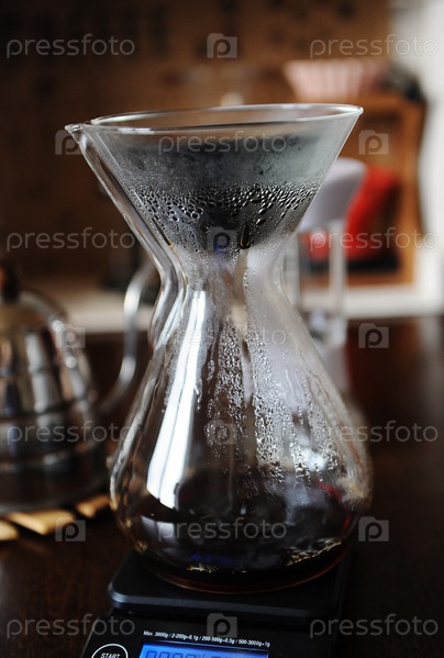 Черный японский пористый керамический безбумажный капельный фильтр в стеклянном кувшине. Альтернатива ручному завариванию кофе. Чайник "гусиная шея"