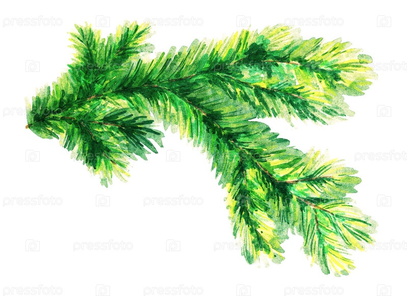 Еловая ветка. Акварель