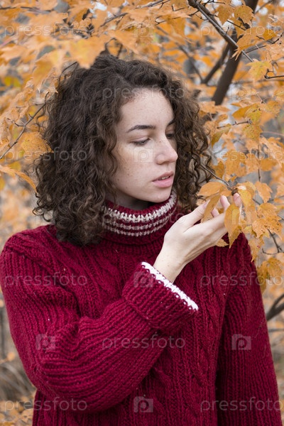 Красивая молодая девушка в осеннем лесу